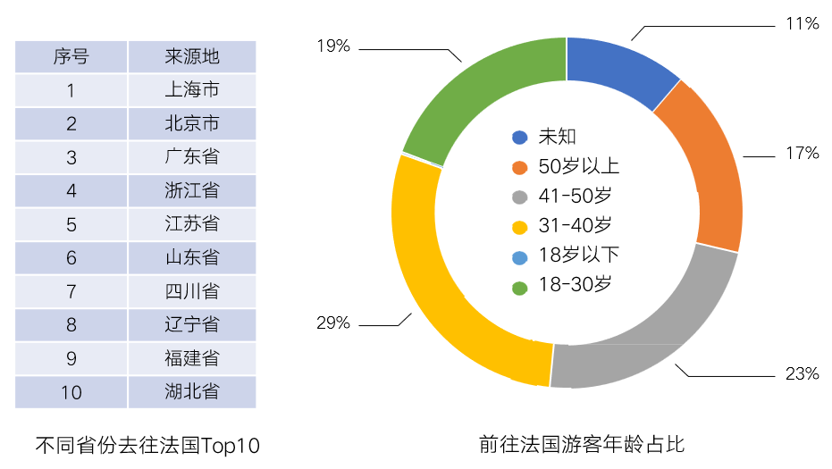 巴黎体育盛会不仅吸引了年轻⼀代的关注,同时也受到了中青年群体的⻘睐。联通大数据对7月26日到8月11日奔赴法国的游客进行进一步分析发现,31-50岁的中青年群体占比达到一半以上,其次是18-30岁的年轻⼈,占⽐为19%。